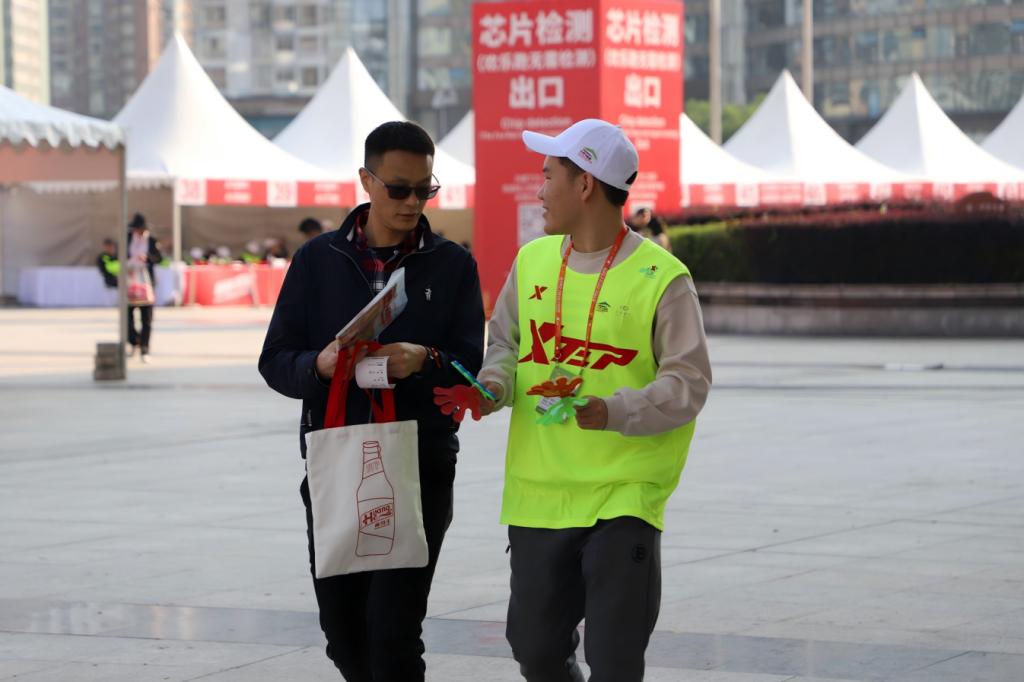 志愿者经层层选拔,组建起一支专业、热情的志愿者队伍。他们中有连续参与长沙马拉松服务的“资深志愿人”,也有初入校园、满怀热忱的新生面孔,共同以“奉献、友爱、互助、进步”的志愿精神,为赛事注入青春动能。现场,志愿者们并肩协作,将沉重的物资箱稳妥运送,汗水浸湿衣背却不停歇。分拣装备时,他们目光如炬,将号码牌、能量补给、参赛手册等物品分类打包,确保每位选手的物资包“零差错、全品类”。每一次弯腰、每一次核对,都是对赛事的郑重承诺。