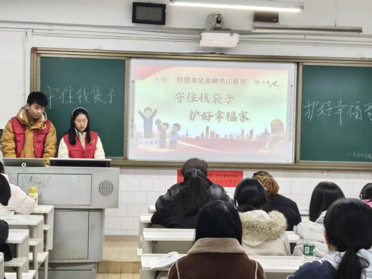 主题班会润心田:让防非知识在课堂生根。雷锋月伊始,志愿团走进各班级教室,开展“守住钱袋子 护好幸福家”主题班会活动。志愿团针对大学生群体专门梳理案例库,通过有奖问答、情景模拟等互动形式,将“高息理财”“游戏交易诈骗”“注销校园贷”等典型案例层层拆解。班会上,同学们争相举手参与问答,现场气氛活跃。不少同学将宣传手册带回家,与家人朋友分享学到的防骗知识。