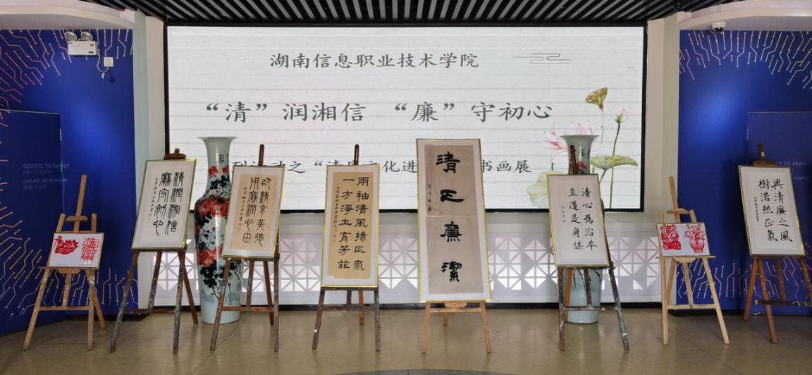 翰墨激浊流,妙笔扬清风。为积极弘扬廉政文化,传播廉洁理念,进一步推进“清廉湘信”建设,我院号召师生们以“廉洁”为主题,以书画为载体,将廉洁精神与书画艺术相融合,面向全体学生征集书画作品,最终精选出了82件进行展出。“此次清廉书画展,既给学生搭建了展示平台,也给广大师生带来了一场文化盛宴,于无声中讲述清廉文化,于笔墨中感受师生风采,作为思政课教师,看到熟悉的学生创作的廉洁主题的书画作品,倍感骄傲和自豪。”正在观看的清廉书画展的马克思主义学院青年教师金艳时不时拿出手机拍下师生的书画作品。