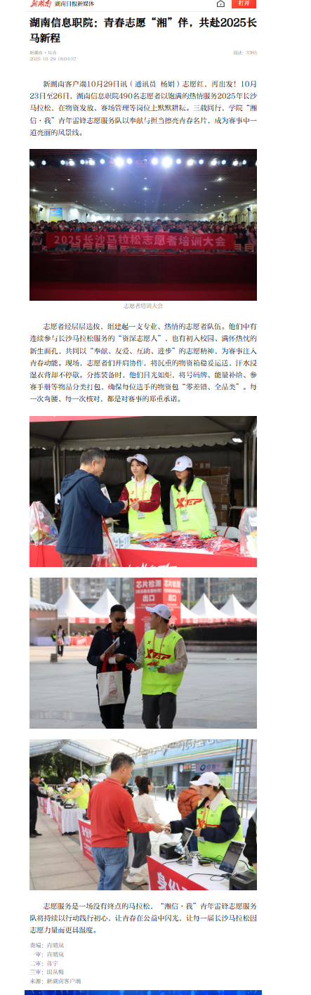 10月29日,新湖南发布《湖南信息职院:青春志愿“湘”伴,共赴2025长马新程》