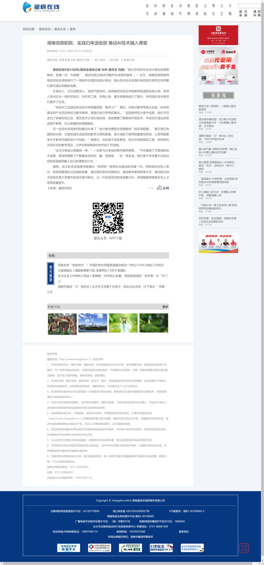 9月24日,星辰在线发布《湖南信息职院:实践归来话收获 推动AI技术融入课堂》