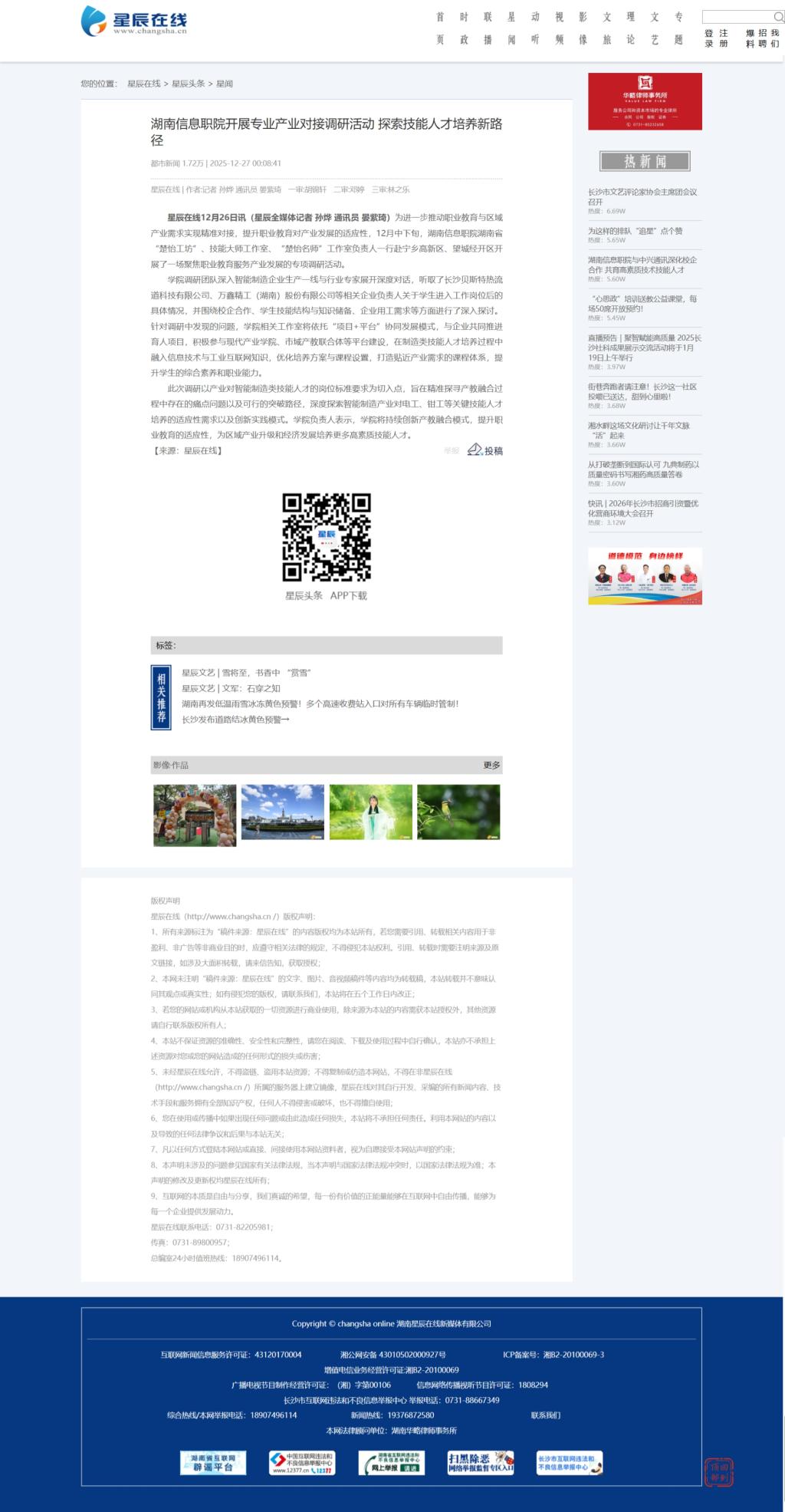 12月27日,星辰在线发布《湖南信息职院开展专业产业对接调研活动 探索技能人才培养新路径》