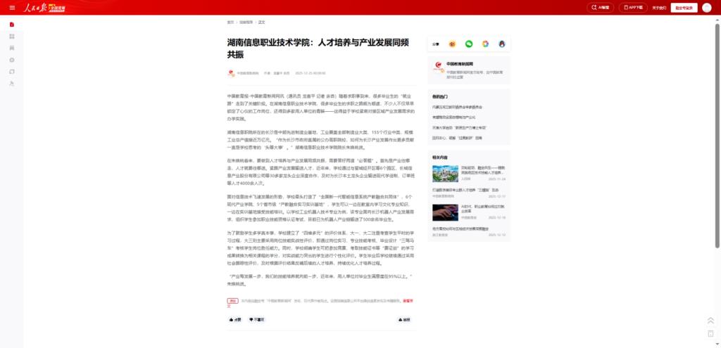 12月25日,中国教育新闻网发布《湖南信息职业技术学院:人才培养与产业发展同频共振》