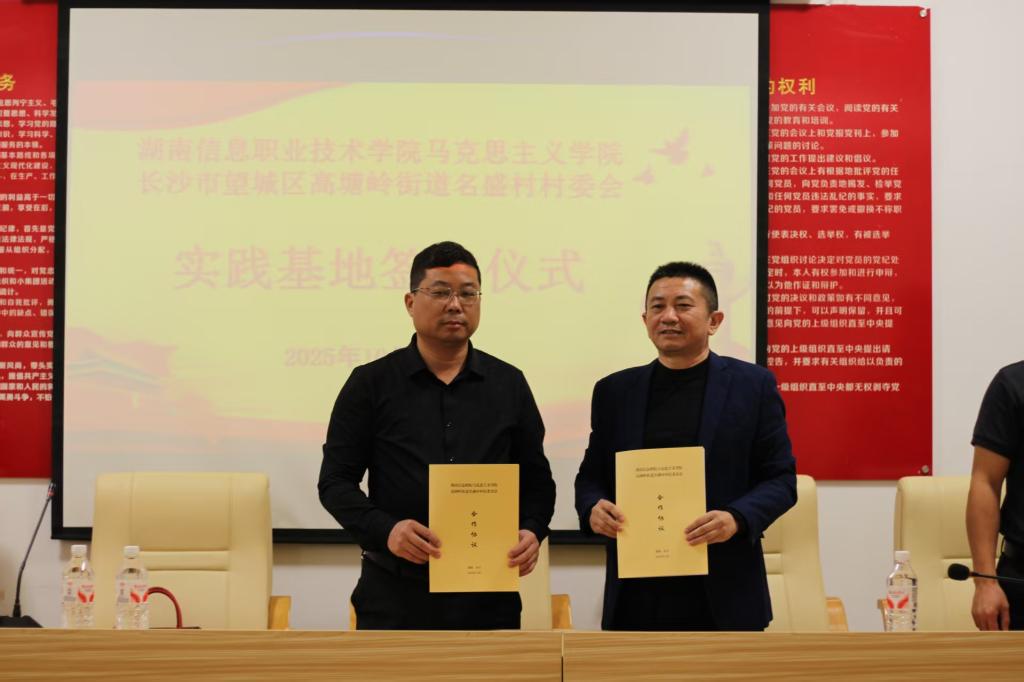 基地共建打造育人平台。基于区域党建共建、文旅融合相通、志愿服务乡村振兴等合作目标,马克思主义学院和名盛村委会经过前期对接,本次成功签订实践教学基地合作协议,并进行授牌。运用好本地实践资源上好思政课一直是马克思主义学院的做法,把思政课上活,上到社会大课堂去,打造有风景的思政课。到目前为止,马克思主义学院已先后与雷锋纪念馆、长沙非遗中心、郭亮烈士故居等数十家单位或纪念场馆签订了教学实践基地合作协议,做到了切实运用好基地资源,有效开展思政课实践活动,实现了思政课堂实践延伸的目标。
